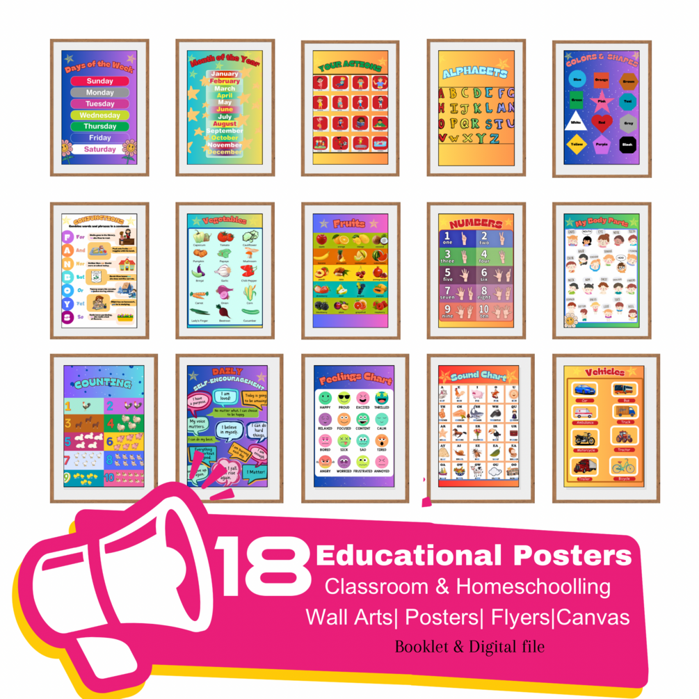 Calling all educators and homeschool heroes! Unleash the power of learning with our Digital Educational Poster 18 Set Bundle. Tailored for teachers and homeschool parents, this collection is a curriculum companion like no other. Elevate your lessons with visually captivating posters spanning various subjects. Empower your students with engaging visuals that make learning memorable. Instant download for instant inspiration—because education should be extraordinary!